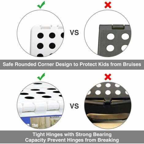 【Sgabello sicuro e antiscivolo】 Il pannello di corsa è stato approvato dal certificato EN14183. Caratteristiche ha migliorato la barra pieghevole. I quattro angoli arrotondati super sicuri proteggono il tuo corpo dagli urti. I piedini in gomma si trovano sui 4 angoli del gradino per mantenere una posizione fissa e proteggere da scivolamenti e cadute. Tutti questi design proteggono i tuoi figli. first.