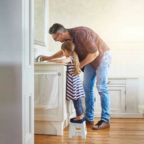 【Sgabello multifunzionale e pratico】 È pratico per gli adulti che vogliono accedere a armadi o mobili alti, pulire il vetro, ma anche per i bambini in modo che possano usare il lavabo. il bagno, il W.C o raccogliendo oggetti dall’alto. Questa piccola scala a pioli è quindi ideale per tutta la casa (cucina, bagno, laboratorio, garage), ideale anche per i bambini.