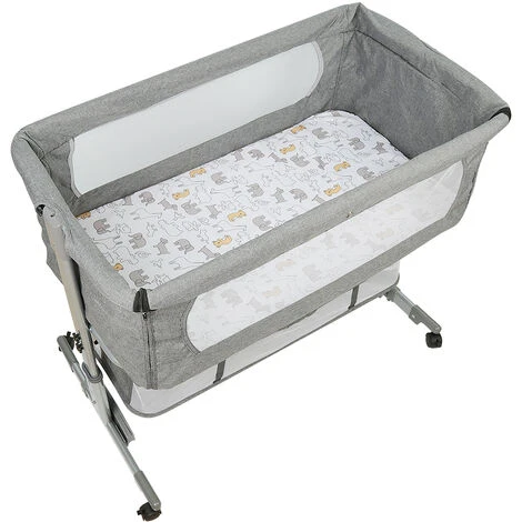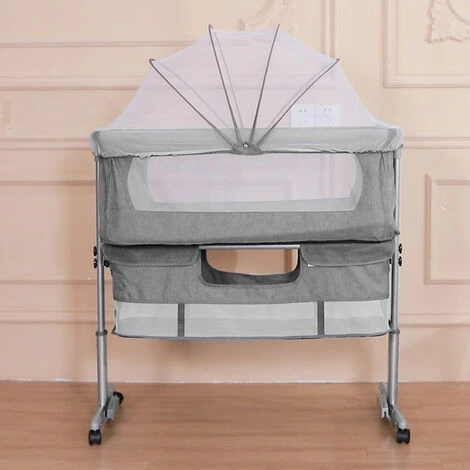 Caratteristiche del prodotto: portatile, con ruote, lettino da gioco, età applicabile: 0-36 mesi, il lettino ha la funzione di alzare l’altezza, e nella parte inferiore può esserci anche una custodia per riporre i prodotti per l’infanzia.