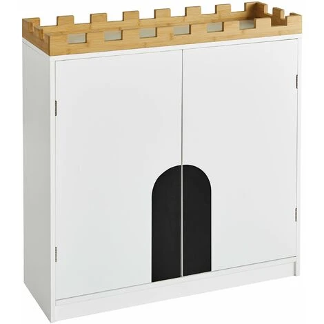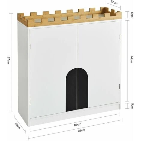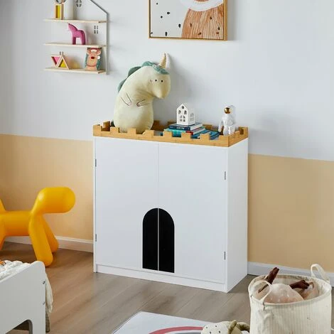 L’armadio per bambini è composto da due ripiani dietro le ante e 1 scomparto e offre ai bambini opzioni di archiviazione creative. Libri, scatole, giocattoli o peluche possono essere piacevolmente decorati su questa mensola in legno.