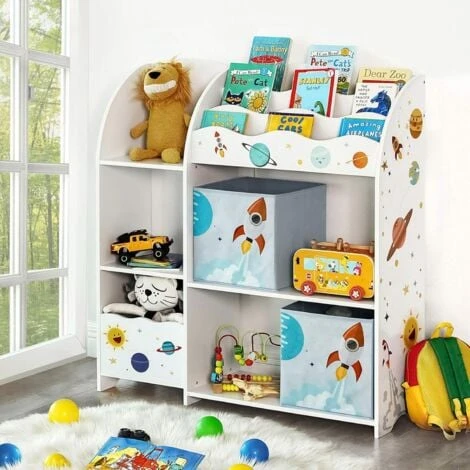 Songmics Organizzatore Per Giocattoli, Libreria Per Bambini, Scaffale Multifunzionale Con 2 Scatole Portaoggetti, Alta Capacità, Per Camera Dei Giochi, Camera Da Letto, Soggiorno, Bianco