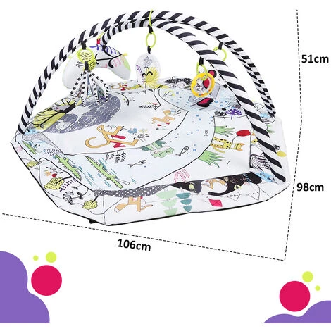 SUPPORTA LO SVILUPPO: Progettato in colori contrastanti per stimolare la vista del bambino durante i primi mesi di vita. Giocattoli colorati di diverse trame stimolano il tatto e incoraggiano anche i bambini ad allungare le braccia. Il tappeto crea uno spazio confortevole in cui il bambino può imparare a girarsi e guardare in alto.